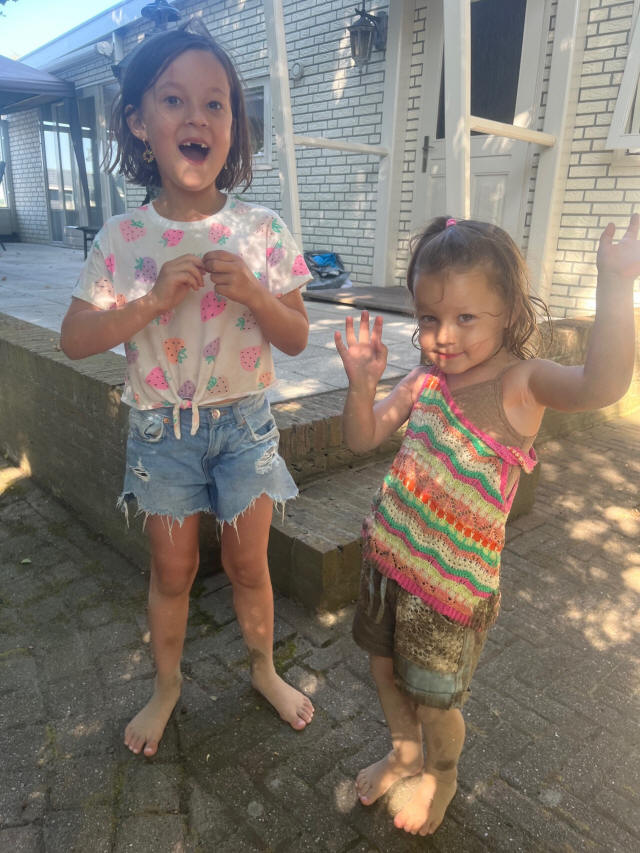 Ook de kleinkinderen Lola en Evi genieten op de camping