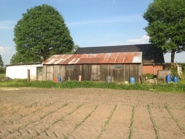 Dit gebouw was voorheen de tijdelijke schilderswinkel van wijlen Johan Disselhorst. Het demontabele houten bouwwerk stond bij zijn tante Diene Besten, plaatselijk beter bekend als Hinkaamps Diene, op het boerenerf aan nu de Bathemerweg 8 in Haarle. Toen Johan Disselhorst trouwde met zijn Sannie, kon hij het oude familie schildershuis aan de Molenweg in Haarle terugkopen. Zo kwam mijn boer Wim aan de demontabele schuur die hij herbouwde en met vriendenhulp uitbreidde tot zijn eigen boerderij met mestkelder en zelfs een melkmachine. Hij hield er koeien, kippen, paarden en andere dieren..jpg)
